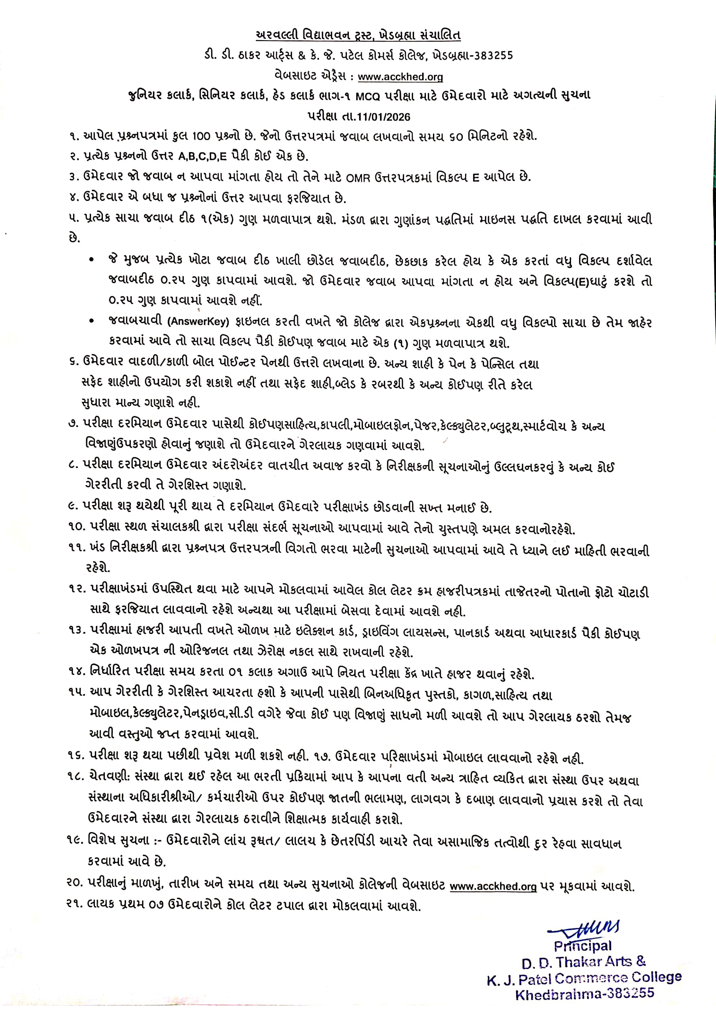 જુ.ક્લાર્ક પરીક્ષા અંગે સૂચનાઓ